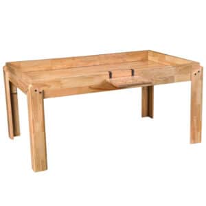 This photo shows the Clear Coat Nilo Master Table and flip shelf.